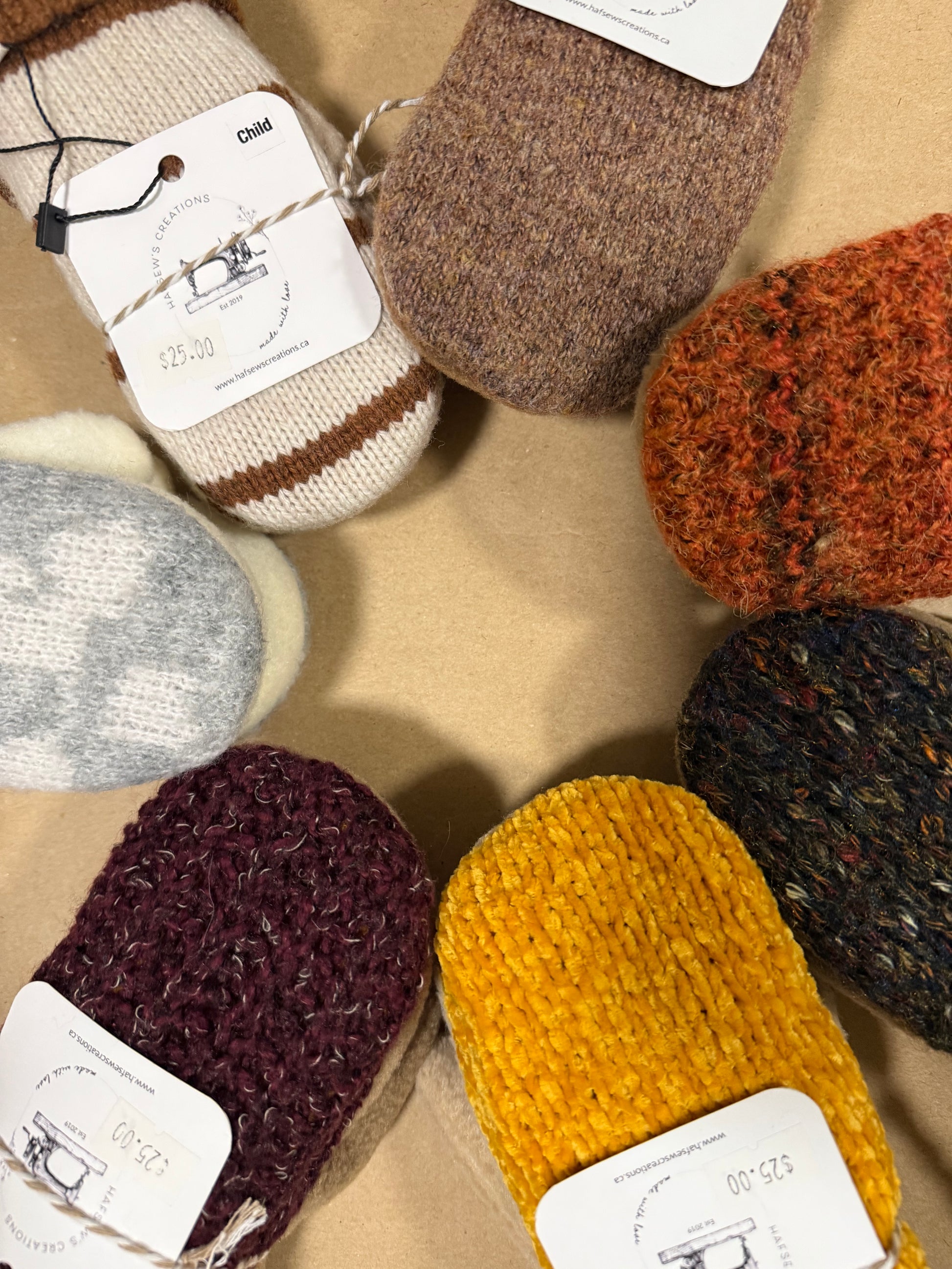 These handmade child mits are an absolute must have ! Each pair is lined with Arctic fleece keeping your child’s hands toasting !