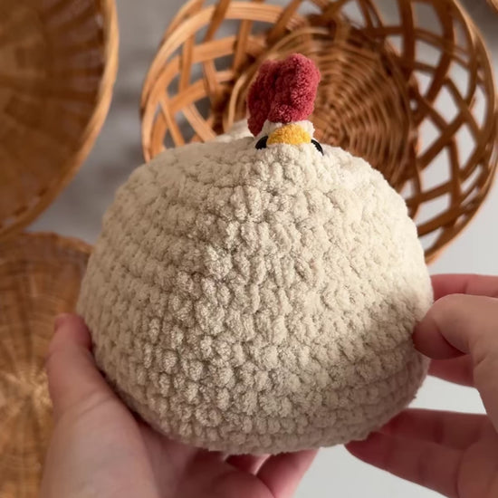Meet the Mama Hen Crochet Plush, a charming handmade plush designed with a cozy pocket underneath to hold her little eggs. Carefully crocheted using soft, plush materials, this sweet hen is both playful and heirloom-quality. Made to be loved and treasured for years.