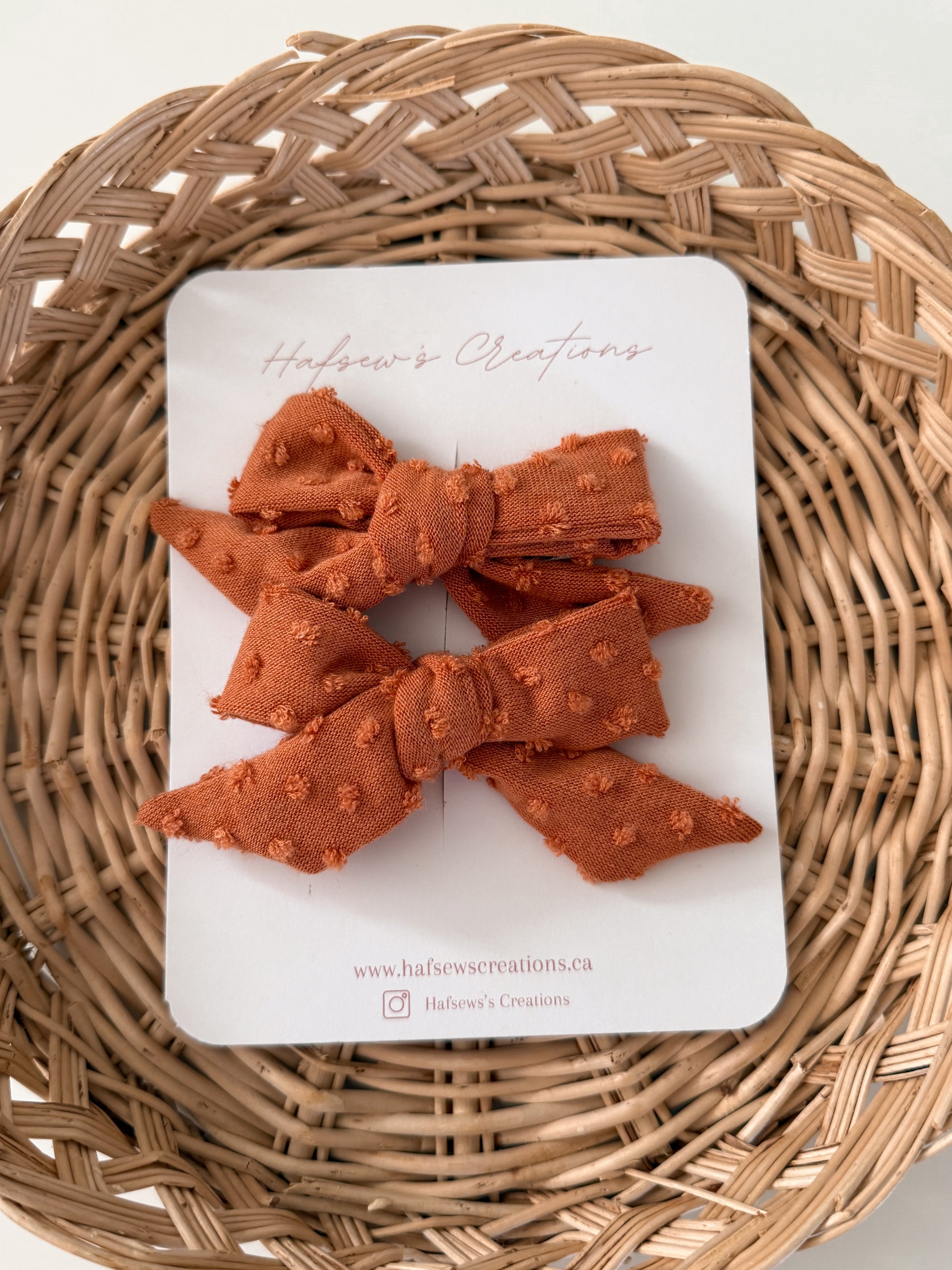 Cheer on your favorite team in style! These handmade orange bows are designed to let even the littlest fans show their team spirit. Made from soft textured fabric with a playful dotted detail, they’re the perfect finishing touch for game days.