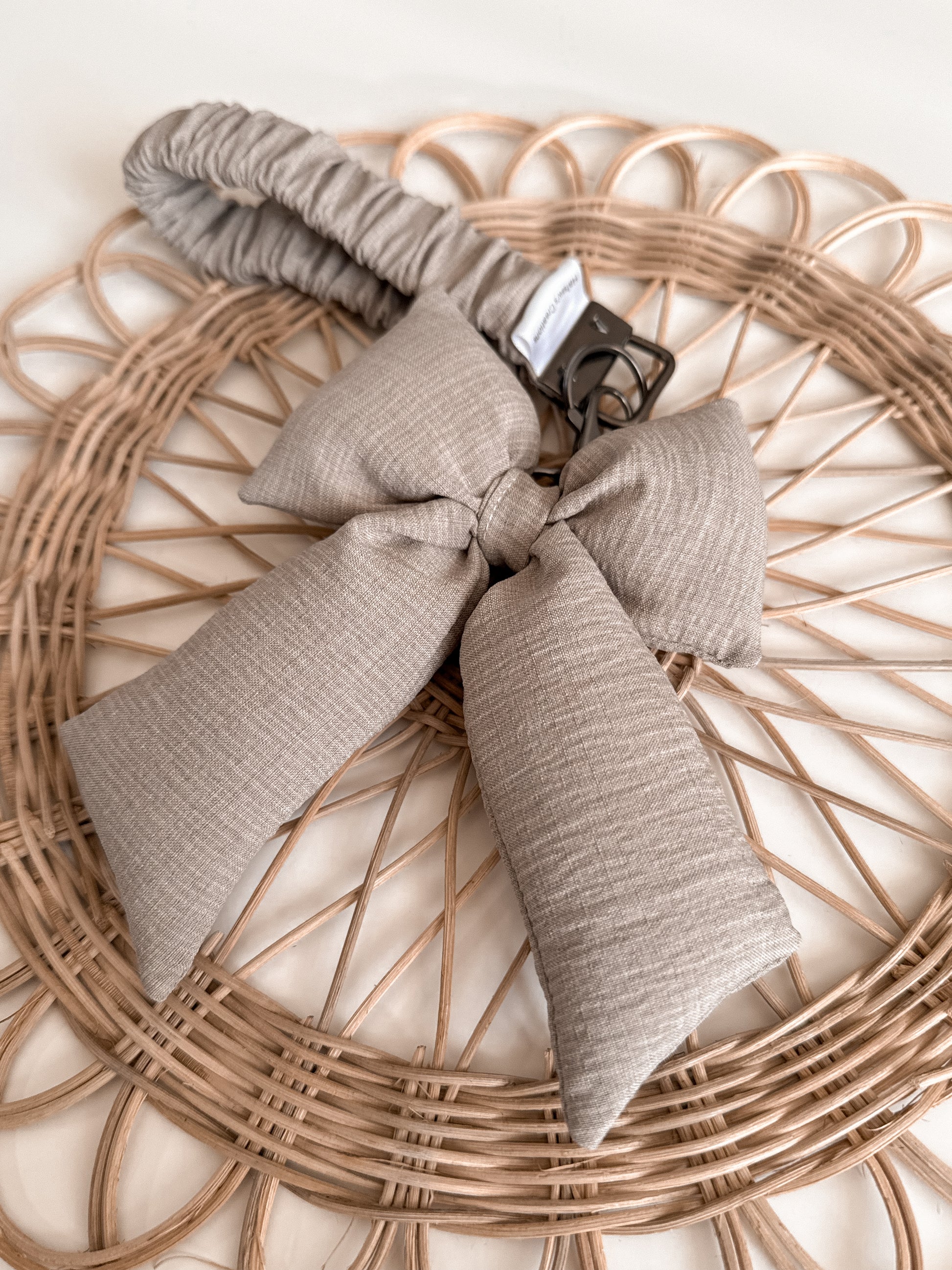 Each piece is thoughtfully handmade in small batches using remnants fabric, and thrifted elastic, helping reduce waste while giving new life to beautiful materials. The neutral tone pairs beautifully with any outfit and makes a lovely everyday accessory or gift.